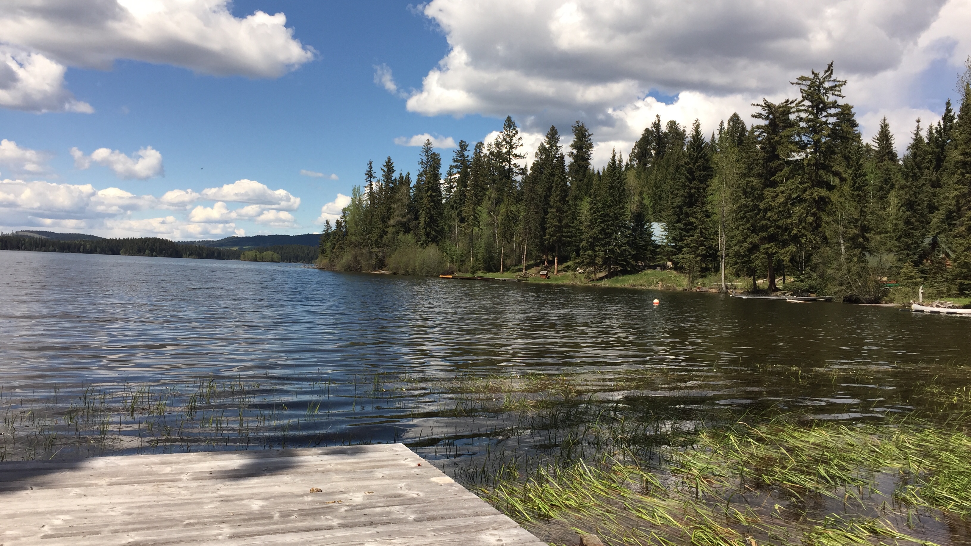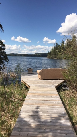 Vom Highway 97 ging es dann auf den Highway 24, welcher in West/Ost Richtung durch eine Seenlandschaft verläuft. Hier war es dann fahrerisch und landschaftlich auch wieder interessanter und deutlich weniger Verkehr. Leider sind die Seen von der Straße nicht so gut zu sehen, man muss dann ggf. einem der Hinweisschilder folgen, um an einem für eine Pause anzuhalten. Dies taten wir auch am Bridge Lake, wo wir auf einem Steg auf einem Sofa in der Sonne relaxten. Paradisisch! Ich hatte zwar den leisen Verdacht, dass dies kein öffentlicher Rastplatz sondern ein Privatgrundstück war, aber es kam glücklicherweise niemand, um uns zu verjagen.