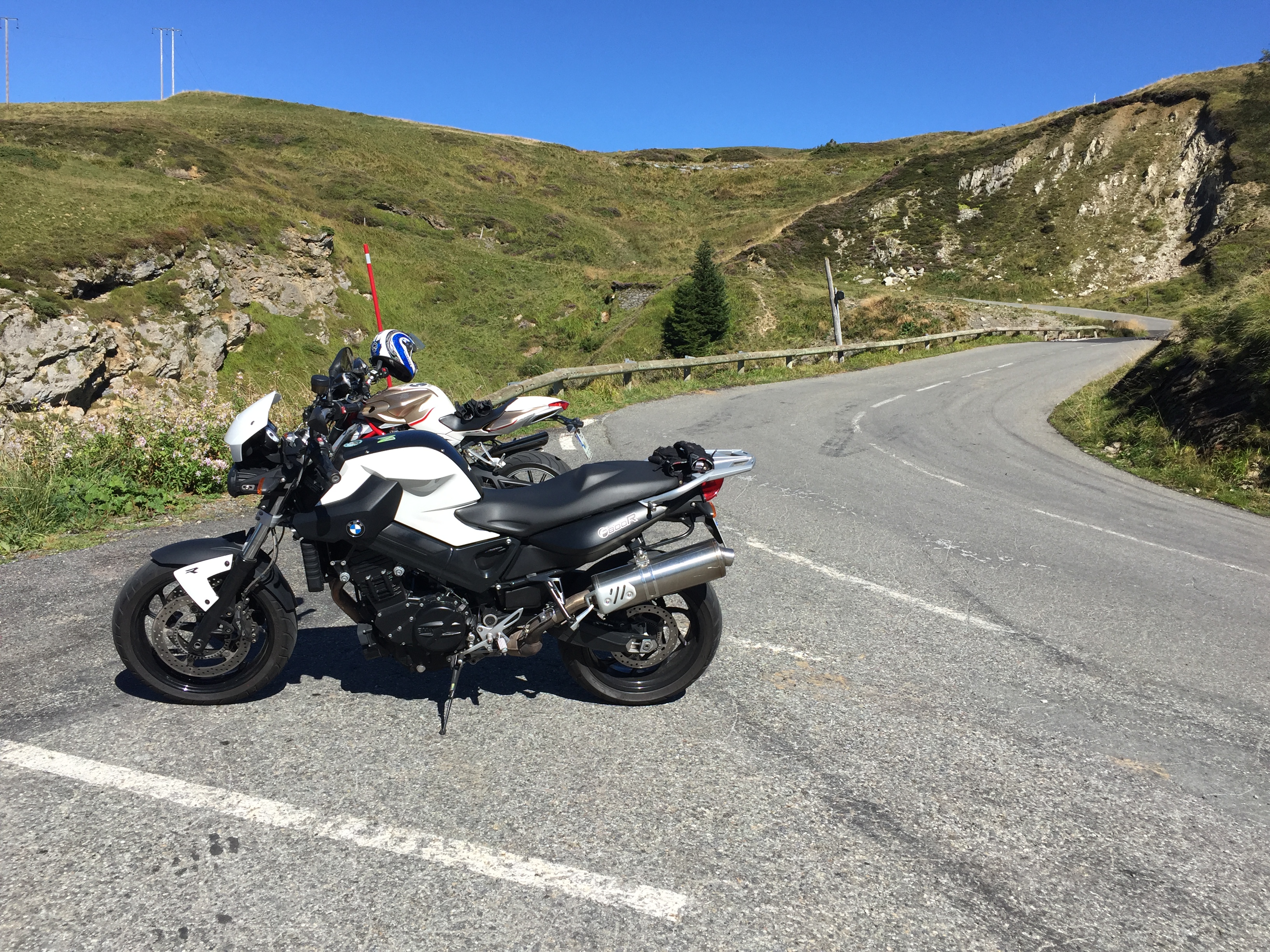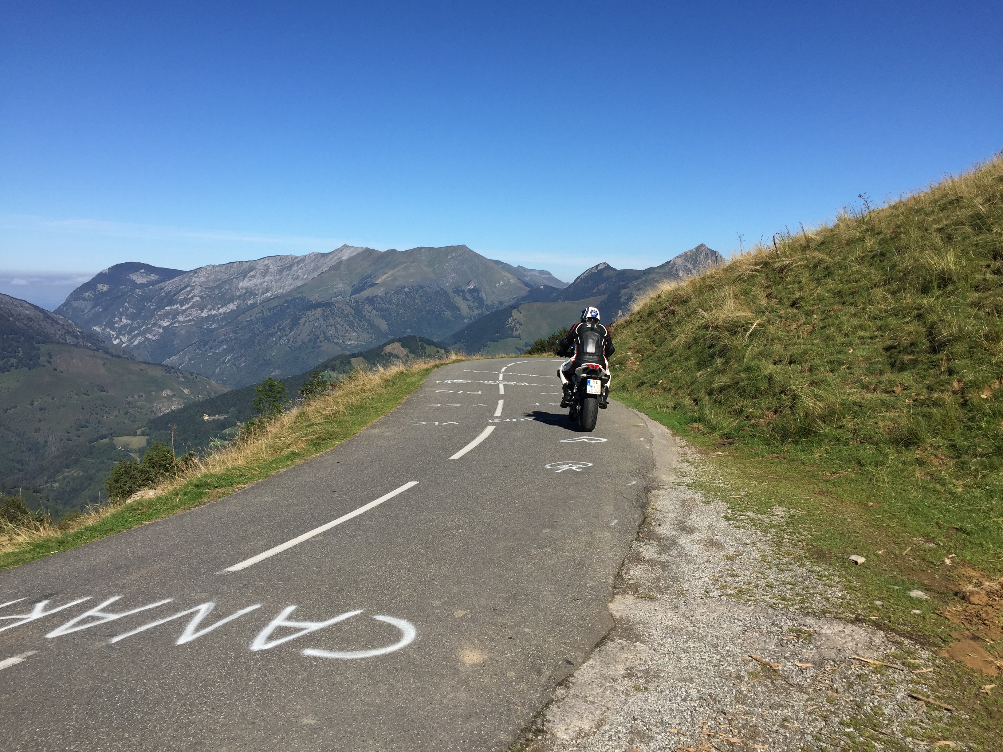 Die Abfahrt vom Col d’Aubisque ist in meinen Augen landschaftlich schöner als die Auffahrt, da man einen weiteren Ausblick ins Tal hat. Allerdings muss man hier auch gleich den zweiten Pass des Tages, den Col du Soulor mit erwähnen. Denn die Abfahrt von dem einen Pass ist mehr oder weniger auch gleich der Übergang zum anderen. Zunächst geht es abwärts, um dann wieder ein kleines Stückchen aufwärts zu gehen und dann ist man am nächsten Pass. Von dort wurde die Straße ins Tal dann noch etwas breiter und der Asphalt bliebt unverändert gut, so dass man munter bis ins Tal wedeln könnte. Im Tal angekommen ging es dann über die Schnellstraße nach Lourdes und von dort auf nicht ganz so direktem Weg zu unserem Zielort (die Funktion „kurvige Route“ unseres Navis ist immer ein Garant für Mini-Straßen und -Orte, allerdings mitunter auch für nicht ganz tauglichen Straßenbelag).