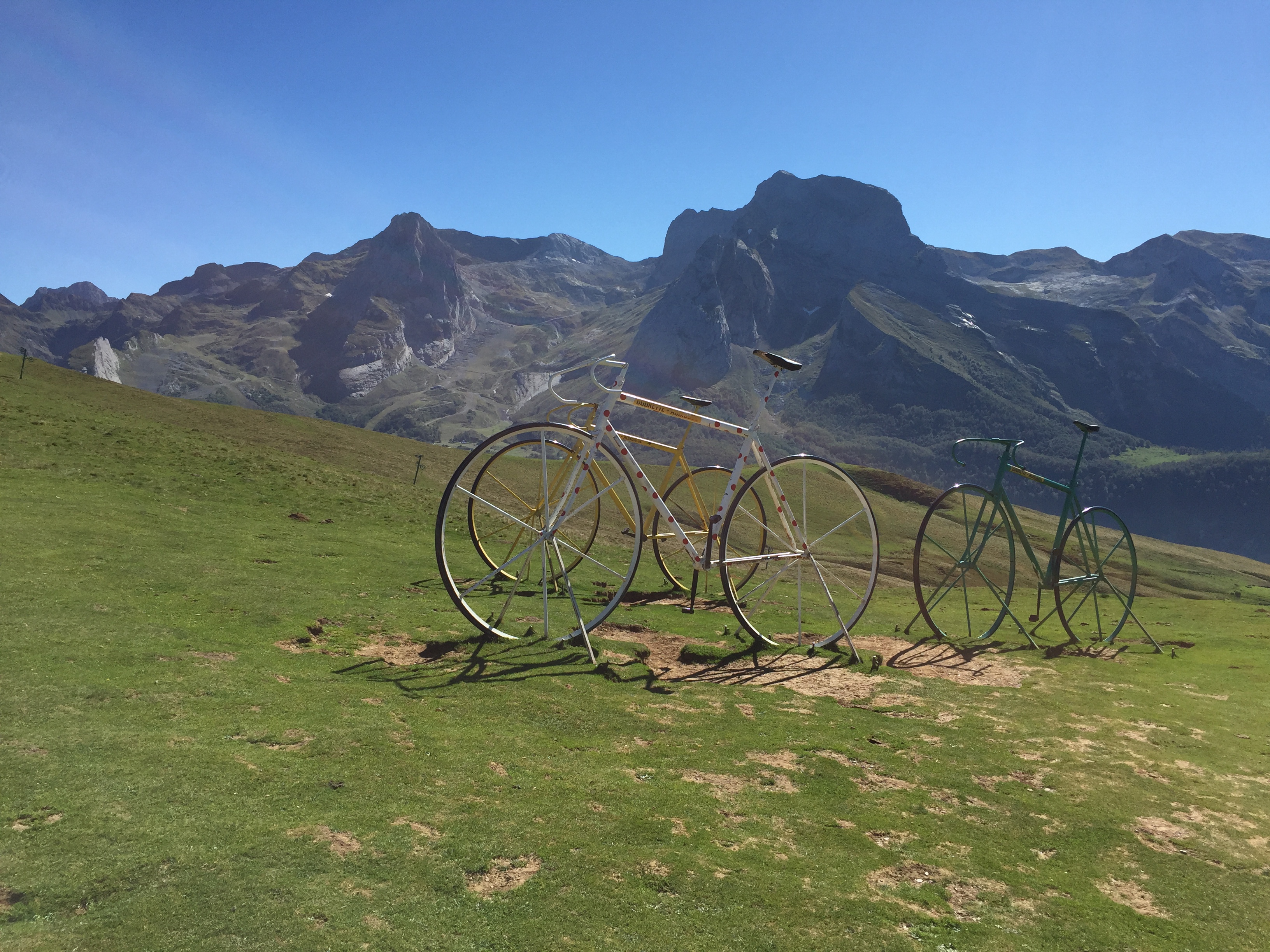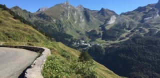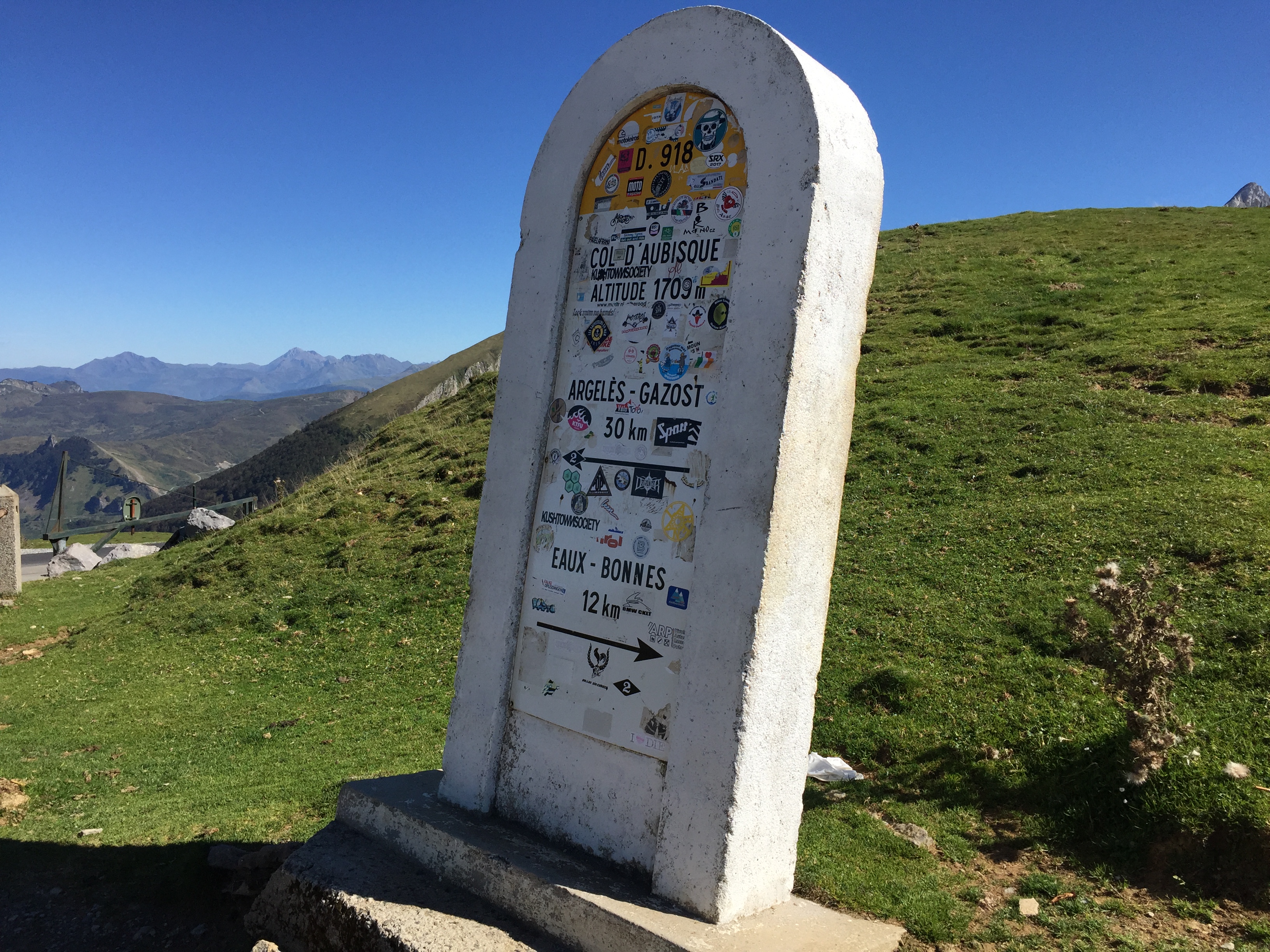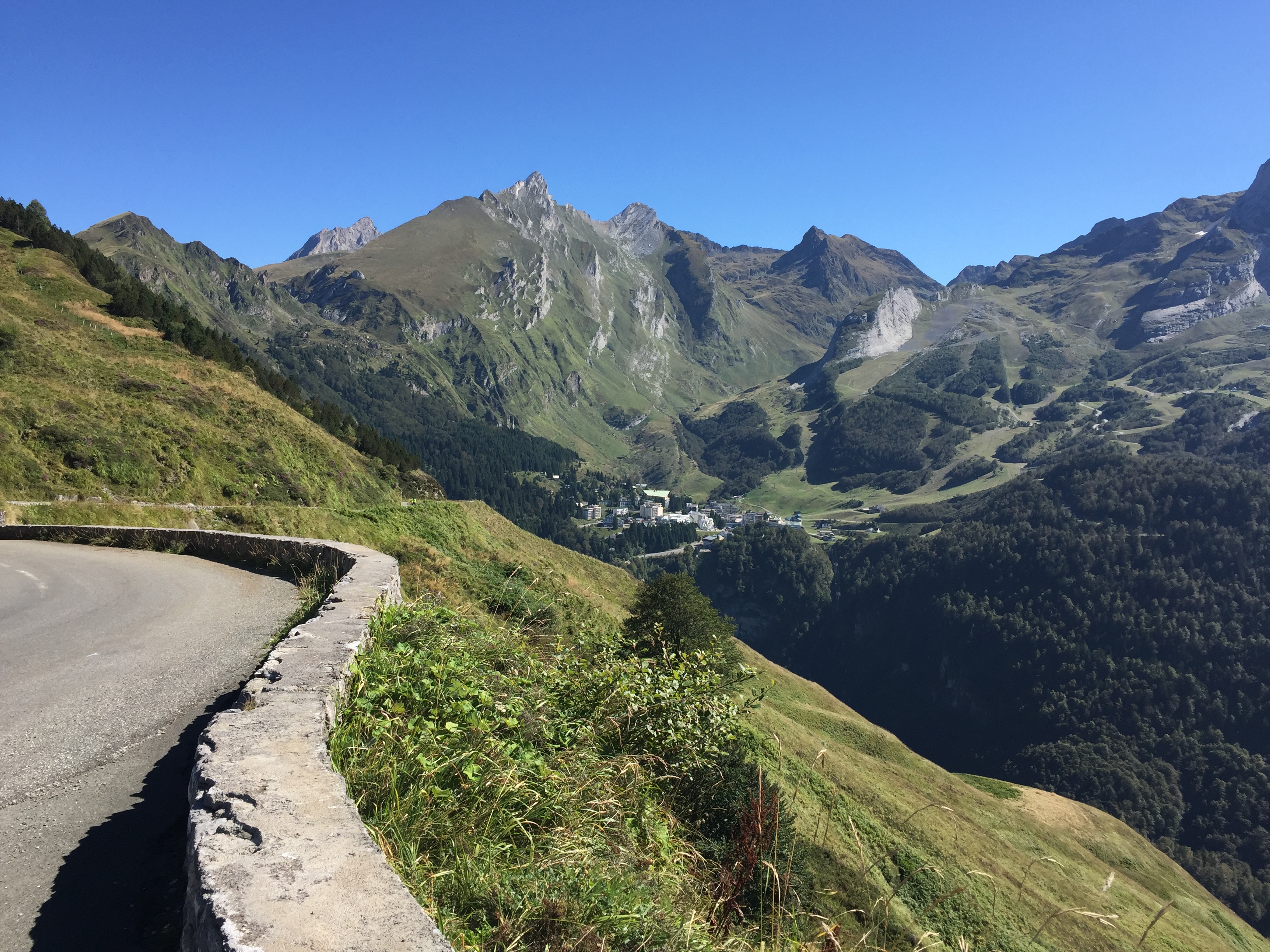 Die Straße führt zunächst durch einen Wald nach Eaux-Bonnes, einen Thermal-Kurort, der aber seine besten Zeiten hinter sich zu haben scheint. Anschließend gelangt man nach Gourette, einer der üblichen Wintersport-Orte, die im Sommer ziemlich trostlos aussehen. Hinter Gourette werden dann schnell die Bäume weniger und man nähert sich dem Col d‘Aubisque. Ca 1-2 km vor dem Col gibt es noch mal ein Café mit größerem Parkplatz und Blick ins Tal bzw. nach Gourette. Oben an der Passhöhe angekommen hat man ebenfalls in beide Richtungen eine schöne Aussicht.
