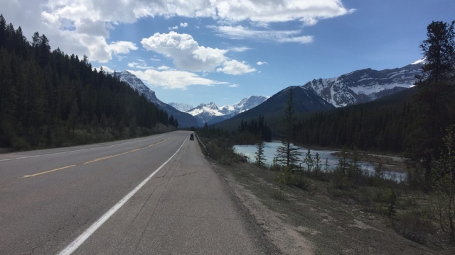 Die Strecke hat kurz hinter dem Icefields Center ihren höchsten Punkt bei knapp 2100m, danach geht es zunächst leicht abwärts.