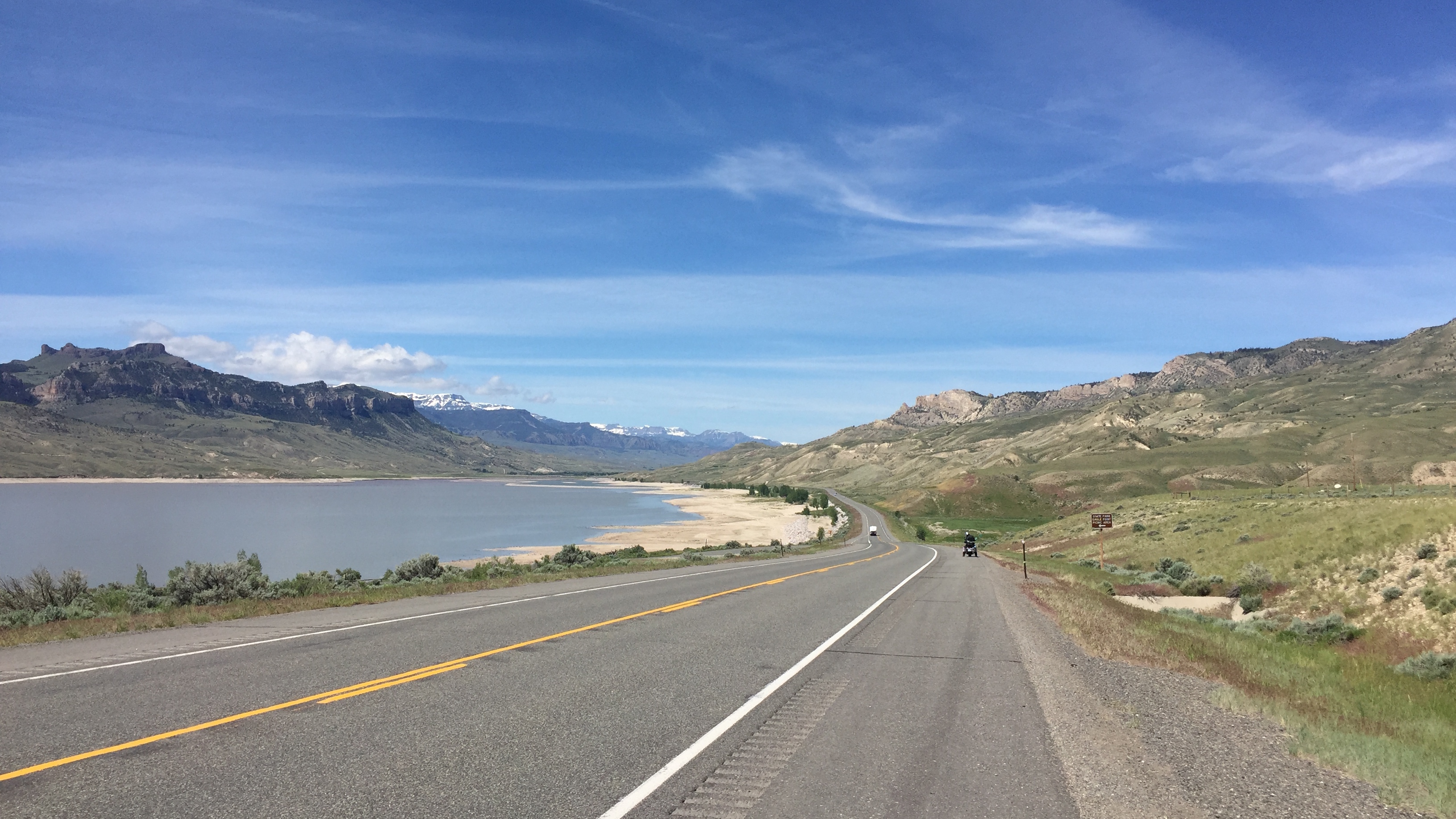 [sgpx gpx=“/wp-content/uploads/gpx/Etappe 11.gpx“][:en]Der Tag startete mit einer landschaftlich schönen Anfahrt von Cody zum Osteingang des Parks auf dem Highway 14, entlang des Buffalo Bill Stausees und durch eine Wild-West-Landschaft. Der Park liegt zu großen Teilen in Wyoming und schon in Cody am Abend zuvor war die Cowboy-Historie dieses Bundesstaates greifbar.Im Park fuhren wir zunächst über den Sylvan Pass (knapp 2600 m). Relativ kalt da oben, die Seen dort noch teilweise gefroren. Von dort geht es dann wieder runter, in Richtung Yellowstone Lake. Vom Lake Butte Overlook hat man eine schöne Aussicht über den See. Wenn man das Ufer entlang fährt, zieht einem am Steamboat Point plötzlich ein übler schwefliger Geruch in die Nase: Hier trafen wir zum ersten Mal auf die geothermischen Aktivitäten im Nationalpark. An mehreren Stellen stieg Dampf am Ufer auf und man konnte sehen, dass der Sand hier eine gelbe Schweflige Farbe hatte. Und es lag wie gesagt der Geruch nach faulen Eiern in der Luft, der aber zum Glück von einer Seebrise schnell weggeweht wurde.