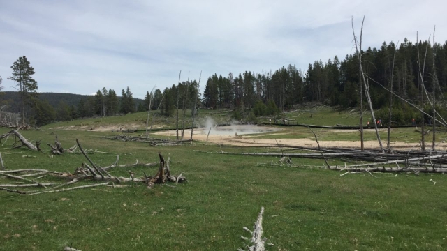 Wenn man das Ufer entlang fährt, zieht einem am Steamboat Point plötzlich ein übler schwefliger Geruch in die Nase: Hier trafen wir zum ersten Mal auf die geothermischen Aktivitäten im Nationalpark. An mehreren Stellen stieg Dampf am Ufer auf und man konnte sehen, dass der Sand hier eine gelbe Schweflige Farbe hatte. Und es lag wie gesagt der Geruch nach faulen Eiern in der Luft, der aber zum Glück von einer Seebrise schnell weggeweht wurde.